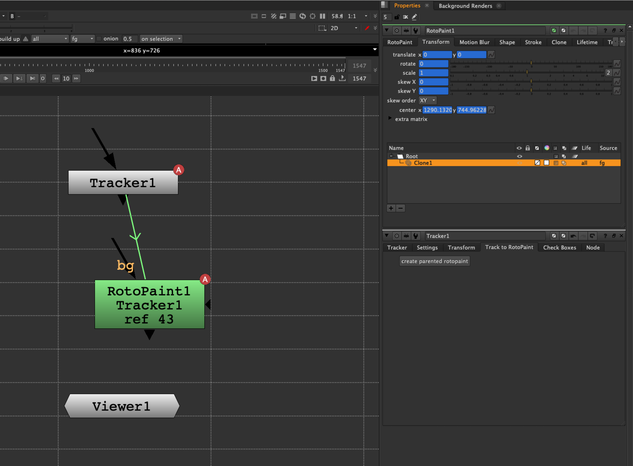 This script adds a tab to the Tracker node containing a button that creates a parented RotoPaint node. The RotoPaint node also names the Tracker it’s connected to and the reference frame.